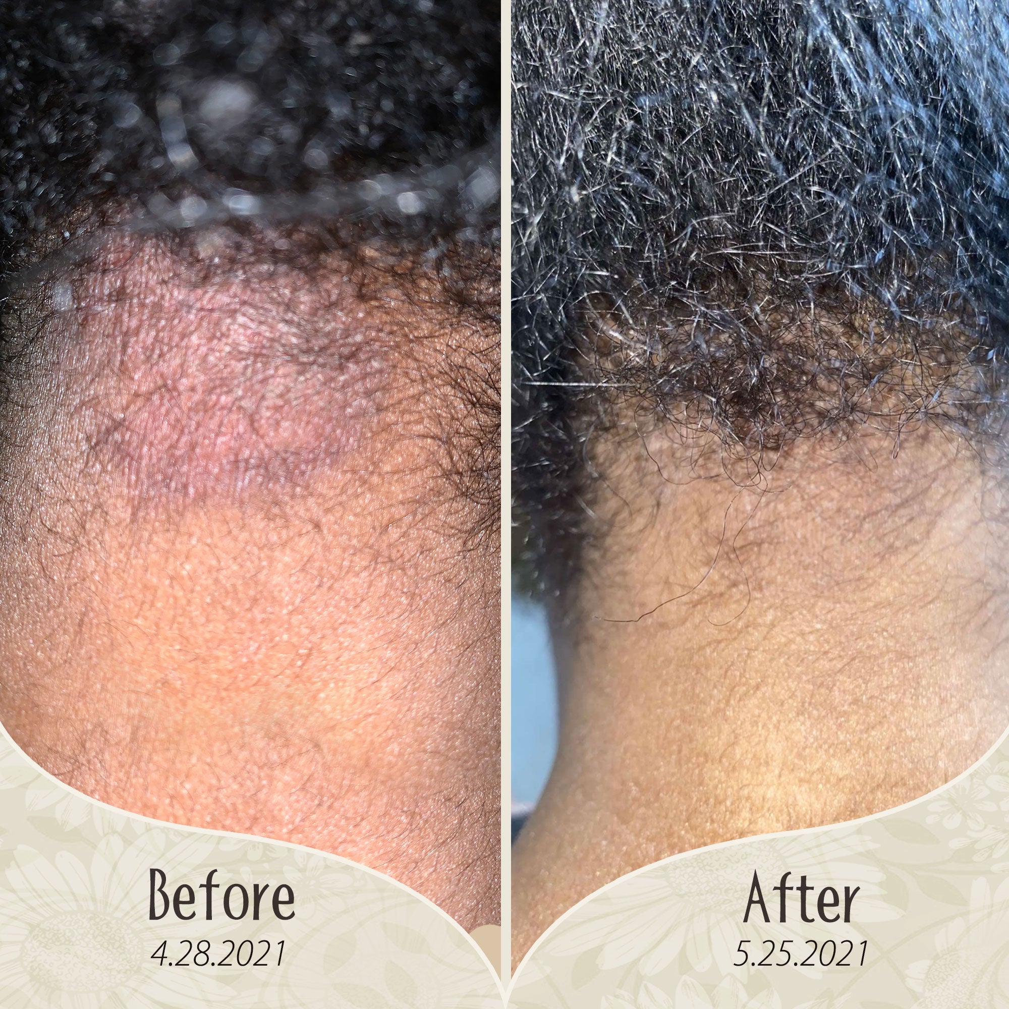 This oil is unlike any other hair growth oil I have ever used. It doesn't have a greasy base and it has made my edges come back to the point where I have never seen my hair grow before. Overall, my hair is thicker and it has a pretty natural sheen to it. I am very impressed with my results. I’ve been using it for about 4 months now. Can’t wait to my hair transformation after my next weave takedown.